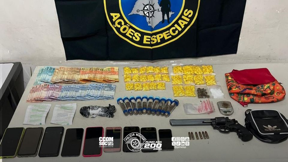 Durante a vistoria, foram localizados R$ 1.640,00 em dinheiro, 917 comprimidos de ecstasy, 10 microtubos com maconha, invólucros de maconha e cocaína, uma balança de precisão, um revólver de pressão com seis estojos e nove celulares.