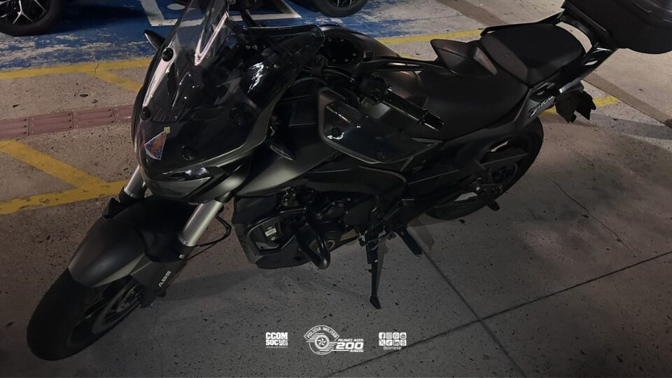 O indivíduo conduzia uma motocicleta esportiva e tentou se identificar com nome falso, mas, após diligências, os policiais descobriram sua verdadeira identidade. A consulta ao sistema apontou que ele era foragido, com mandado de prisão por tráfico de drogas, resistência e receptação, totalizando pena superior a 13 anos em regime fechado.