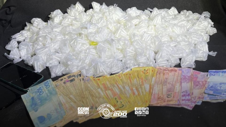 Durante patrulhamento tático na área do 8º Batalhão de Polícia Militar Metropolitano, a equipe da ROCAM abordou um indivíduo na Rua Alferes Frazão, que demonstrou atitude suspeita. Ao ser revistado, os policiais encontraram em sua mochila 56 porções de maconha, 161 porções de crack, 185 porções de cocaína, além de R$520,00 em dinheiro e um caderno com anotações sobre o tráfico de drogas.