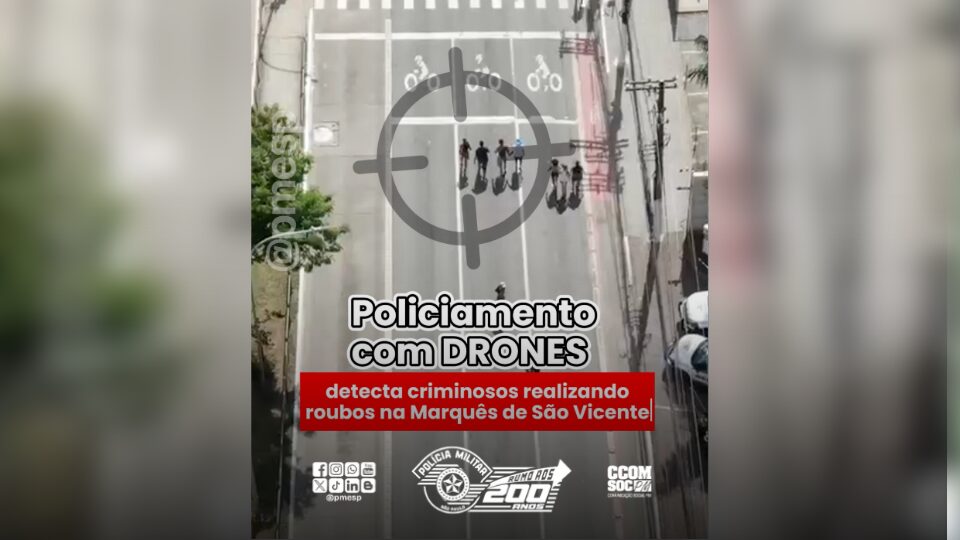Polícia Militar e Guarda Civil Municipal atuaram juntas na ocorrência. No domingo de Carnaval (02), um drone do núcleo de monitoramento aéreo flagrou o momento em que uma mulher foi roubada durante eventos carnavalescos na Avenida Marquês de São Vicente, na zona oeste de São Paulo/SP. As imagens captadas permitiram o acompanhamento em tempo real dos criminosos, que tentaram fugir em direção a uma praça. Equipes da Guarda Civil Municipal (GCM) e da Polícia Militar foram acionadas. Três suspeitos foram abordados pela GCM fora da área do evento, enquanto outros dois foram detidos por policiais militares. A vítima, os cinco detidos e o celular roubado foram encaminhados ao 91º Distrito Policial, onde os criminosos permaneceram presos. COMUNICAÇÃO SOCIAL PMESP