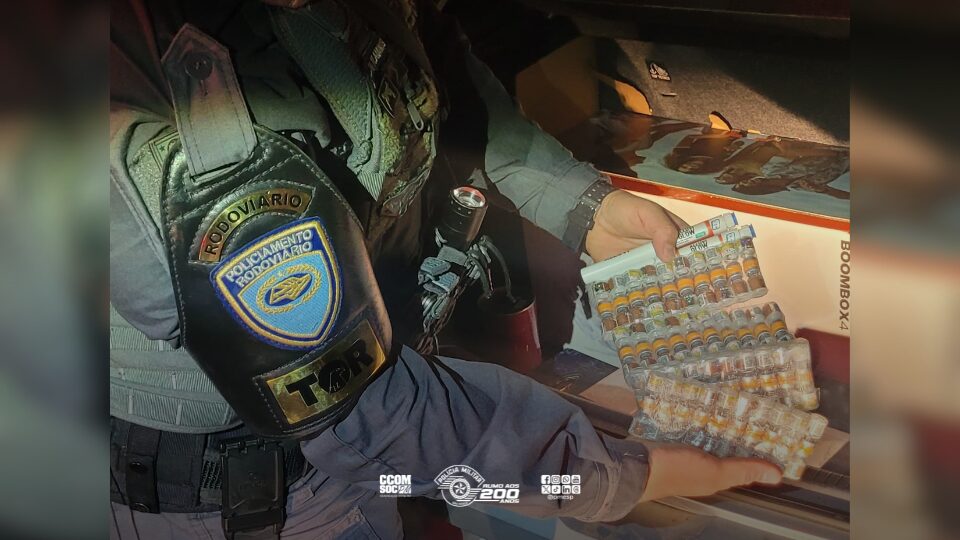 No interior da mochila, os policiais encontraram nove tijolos e um pacote de maconha, totalizando aproximadamente 6,3 kg da droga, além de dez munições calibre 9 mm e uma balança de precisão.