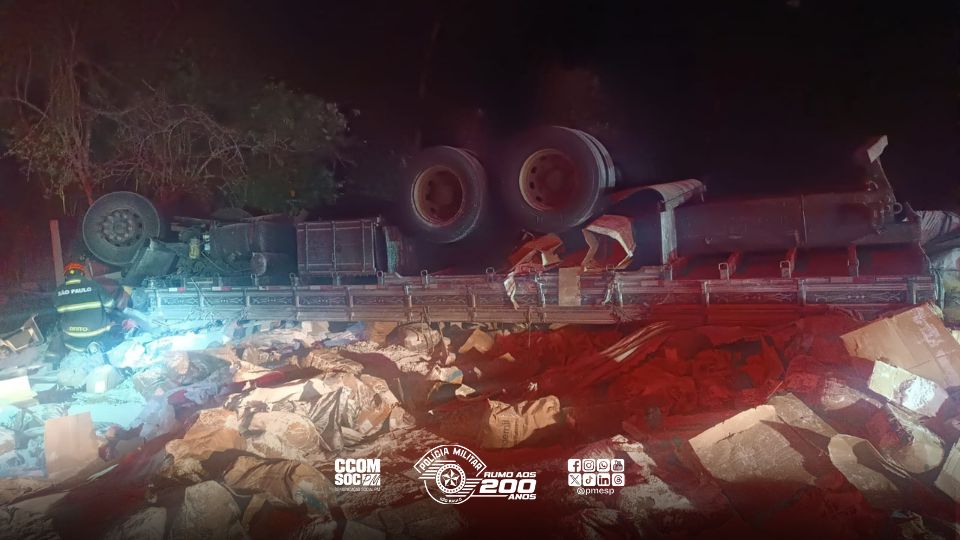 A equipe foi acionada para atender a um tombamento de caminhão em um trecho de serra. No local, os policiais encontraram o condutor já sem vida, preso nas ferragens. A princípio, tudo indicava que o veículo, que transportava uma carga de cal, havia perdido os freios e tombado na pista.