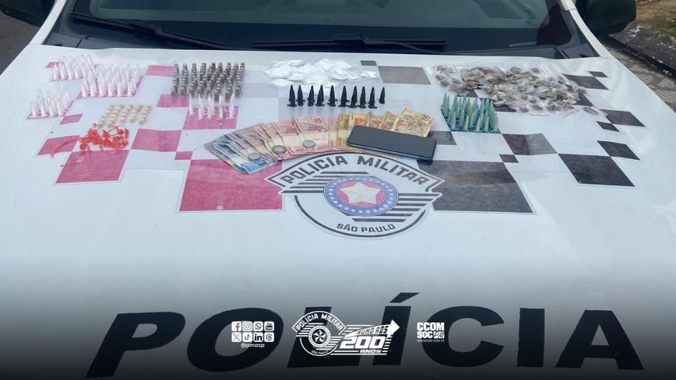 Durante patrulhamento, policiais militares do 39º Batalhão de Polícia Militar do Interior – Batalhão “João Ramalho” – prenderam um indivíduo por tráfico de drogas na Rua Albano Pereira Neto, no bairro Parque São Vicente, em São Vicente/SP.