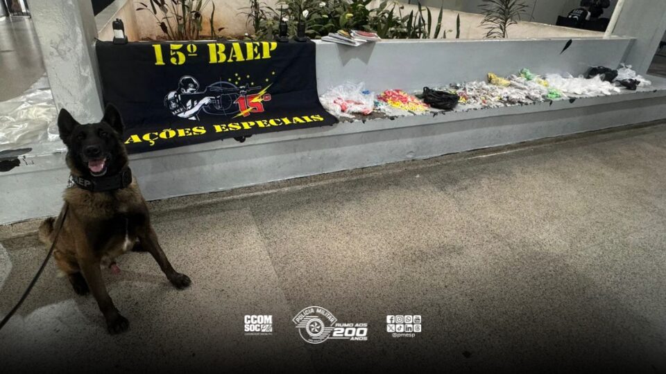 Cão da PM localiza mochilas com drogas e materiais usados no tráfico em Francisco Morato