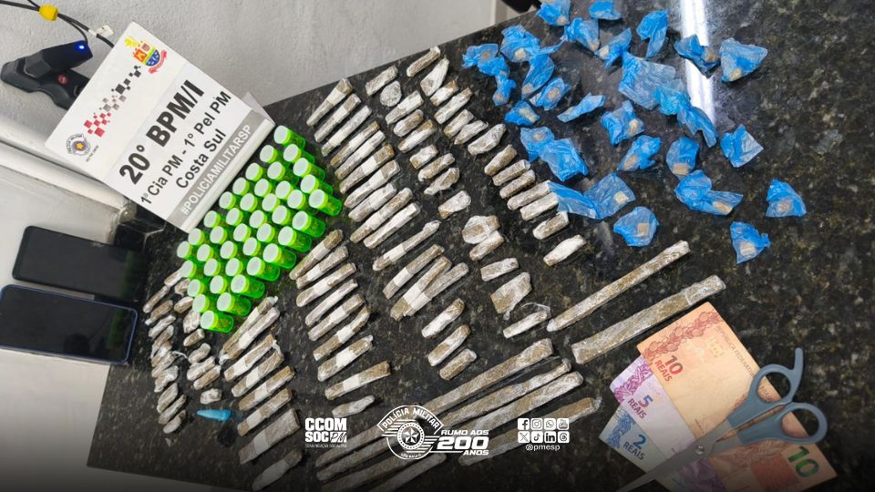 Na manhã desta quinta-feira, 02, dois homens foram presos em flagrante por tráfico de drogas na região da Vila Sahy, localizada na Costa Sul de São Sebastião. A ação foi realizada por equipes do 20º Batalhão de Polícia Militar do Interior (20º BPM/I), durante patrulhamento de rotina da 1ª Companhia, 1º Pelotão.