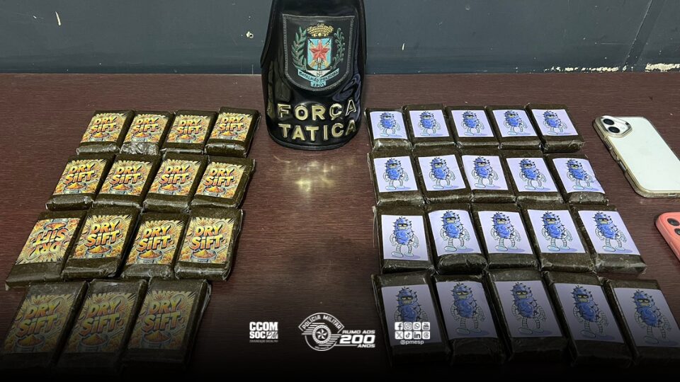 Durante patrulhamento tático na área do 8º Batalhão de Polícia Militar do Interior, na noite de ontem (10), equipes receberam informações sobre acompanhamento de veículo que havia sido roubado em Campinas/SP. Enquanto seguiam para apoiar a ocorrência, um automóvel em alta velocidade passou por uma das viaturas na Rodovia Campinas-Monte Mor, a SP-101, já na cidade de Hortolândia/SP, realizando manobras em “zigue-zague”. Foi iniciado o acompanhamento e, durante o trajeto, os ocupantes lançaram uma sacola branca às margens da via. Após abordagem, nada de ilícito foi localizado no veículo, mas a sacola continha 35 tijolos de haxixe. Os envolvidos foram levados ao 1º Distrito Policial de Hortolândia, onde a prisão foi ratificada, permanecendo à disposição da Justiça. COMUNICAÇÃO SOCIAL PMESP