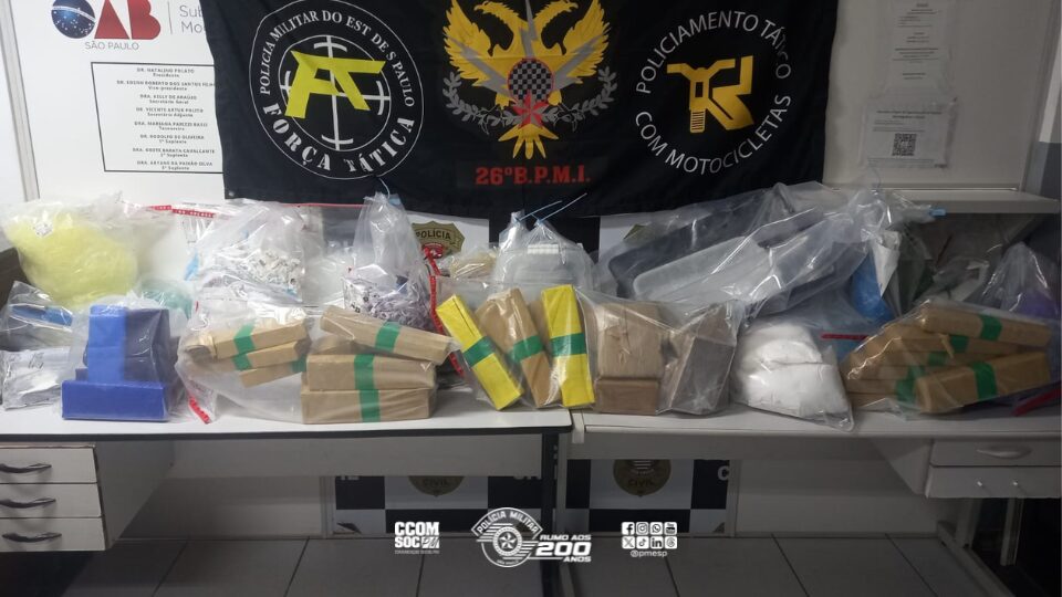 Polícia Militar apreende mais de 56 kg de drogas em ação do 5º Batalhão de Polícia de Choque em Embu das Artes