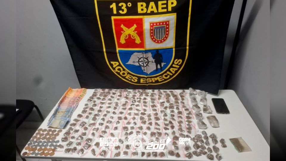 Ontem (26), a Operação Impacto de combate ao tráfico de drogas foi desencadeada na zona oeste de São Paulo, com atuação das equipes da Força Tática e da ROCAM do 4º Batalhão de Polícia Militar Metropolitano. A ação ocorreu na comunidade conhecida como Viela do Portão 9 do CEAGESP, área já marcada pelo intenso comércio de entorpecentes. Durante a incursão, os policiais localizaram uma residência aparentemente desabitada. No andar superior do imóvel, foi encontrado um homem que, ao ser abordado, confessou integrar a organização criminosa responsável pelo tráfico na região e afirmou ser o responsável pelo armazenamento das drogas. No interior da casa foram apreendidas 130 porções de cocaína, 128 porções de maconha, 186 porções de crack, dois aparelhos celulares, um rádio comunicador e um caderno contendo anotações relacionadas à atividade criminosa. O homem, que já possuía antecedentes por tráfico, recebeu voz de prisão em flagrante e foi conduzido ao 91º Distrito Policial, onde permaneceu à disposição da Justiça. COMUNICAÇÃO SOCIAL PMESP