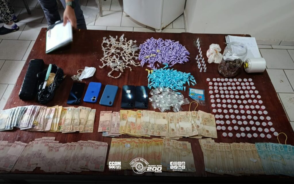 Entre os detidos está um dos principais líderes do tráfico na região, responsável por coordenar a distribuição de drogas entre os municípios de Conchas/SP e Laranjal Paulista/SP Uma operação conjunta entre a Polícia Militar, Polícia Civil e a Guarda Civil Municipal (GCM) resultou na prisão de 12 pessoas e na apreensão de um menor infrator, além de grande quantidade de entorpecentes e dinheiro proveniente do tráfico. A ação aconteceu ontem (30), no interior de São Paulo/SP. A operação teve início nas primeiras horas do dia, no município de Conchas/SP, estendendo-se até Laranjal Paulista/SP. O objetivo foi desarticular uma organização criminosa que atuava no tráfico de drogas na região. Equipes do 12º Batalhão de Polícia Militar do Interior cumpriram quatro mandados de busca em pontos distintos de Conchas e dois em Laranjal Paulista. As diligências resultaram na apreensão de mais de 4,2 mil porções de drogas, entre maconha, ice, cocaína e crack, além de tijolos de maconha e cocaína a granel. Também foram apreendidos R$ 16,6 mil em dinheiro, balanças de precisão, anotações da contabilidade do tráfico e petrechos utilizados para o fracionamento das drogas. Entre os detidos está um dos principais líderes do tráfico na região, responsável por coordenar a distribuição de drogas entre os municípios de Conchas e Laranjal Paulista. COMUNICAÇÃO SOCIAL PMESP