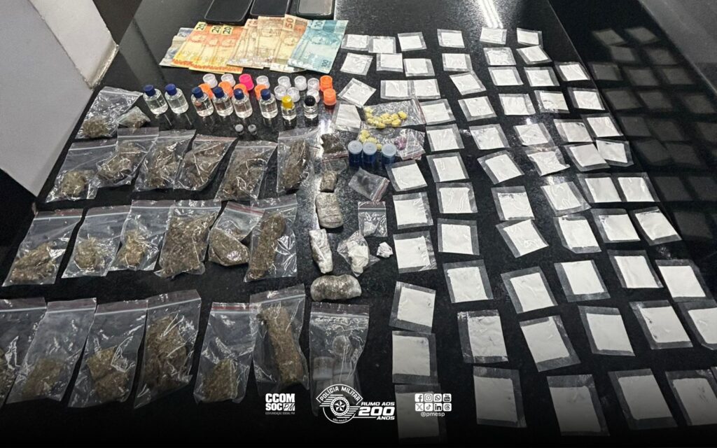 Porções de maconha, ecstasy, cocaína e frascos de lança-perfume foram apreendidos. Dois homens e uma mulher foram presos pela Polícia Militar na noite de ontem (6), durante uma abordagem realizada no bairro Jardim Paulista, área central da capital paulista. O trio foi identificado após denúncias de que um ponto na rua Peixoto Gomide estaria sendo utilizado por criminosos para a venda de drogas. Ao perceber que o grupo seria abordado, a mulher tentou fugir, mas foi detida em seguida. Com os três indivíduos, os policiais encontraram cerca de 140 porções de maconha, ecstasy e cocaína, além de oito frascos de lança-perfume e notas de dinheiro. O trio foi conduzido ao 78º Distrito Policial e permaneceu preso. COMUNICAÇÃO SOCIAL PMESP