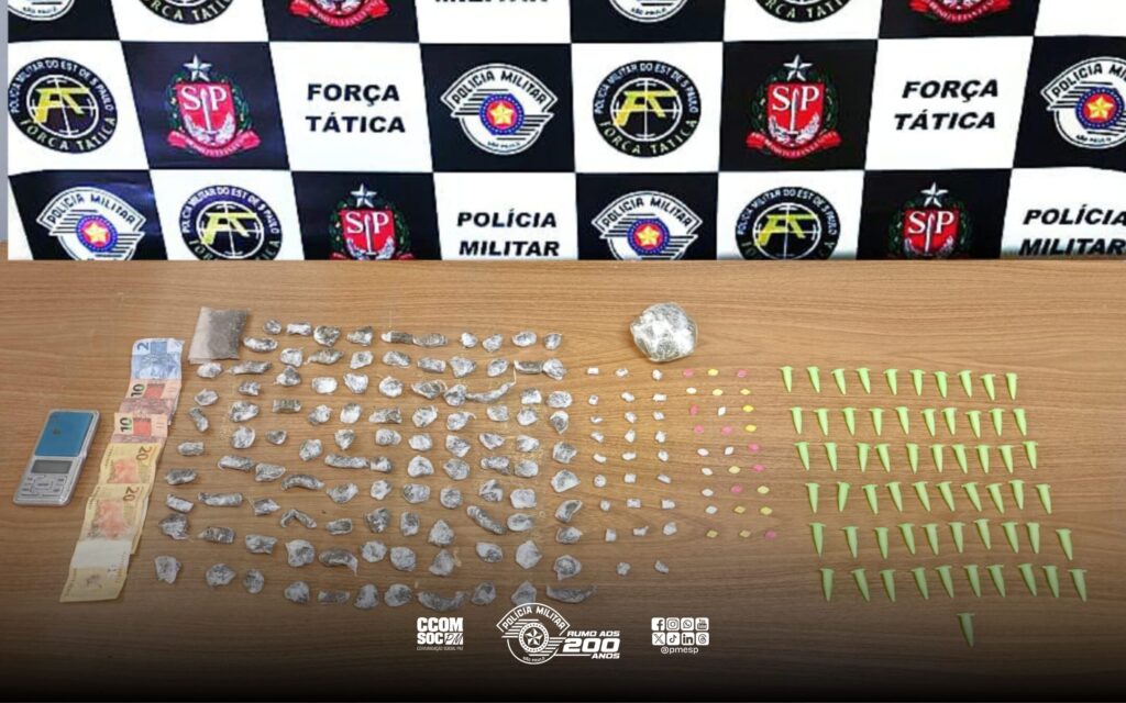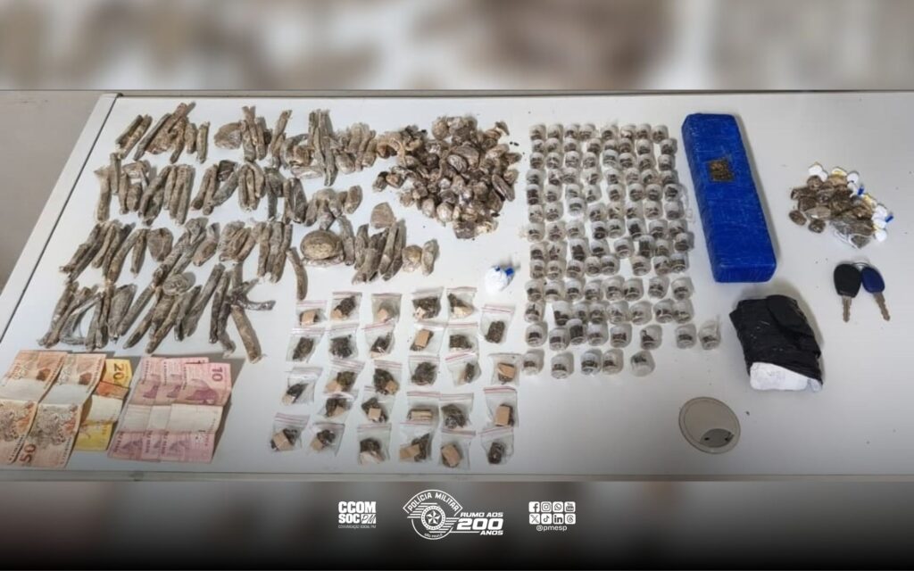 A Polícia Militar prendeu, na noite de sexta-feira (24), dois indivíduos por tráfico de entorpecentes em Sud Mennucci (SP). A ação ocorreu durante patrulhamento preventivo e ostensivo realizado por equipes do 28º Batalhão de Polícia Militar do Interior. Os policiais abordaram um usuário de drogas que havia saído de uma residência já conhecida por denúncias de tráfico. Durante a ação, foram localizadas diversas porções de crack prontas para a venda, uma balança de precisão, celulares e dinheiro. Com o apoio de outra equipe, os policiais realizaram busca no imóvel, encontrando também porções de maconha, um tijolo de crack e uma quantia em dinheiro em notas e moedas. Os envolvidos foram apresentados na Delegacia de Polícia Civil de Pereira Barreto/SP, onde dois deles permaneceram presos por tráfico de entorpecentes. Um terceiro foi liberado após assinar termo circunstanciado por porte de drogas. COMUNICAÇÃO SOCIAL PMESP
