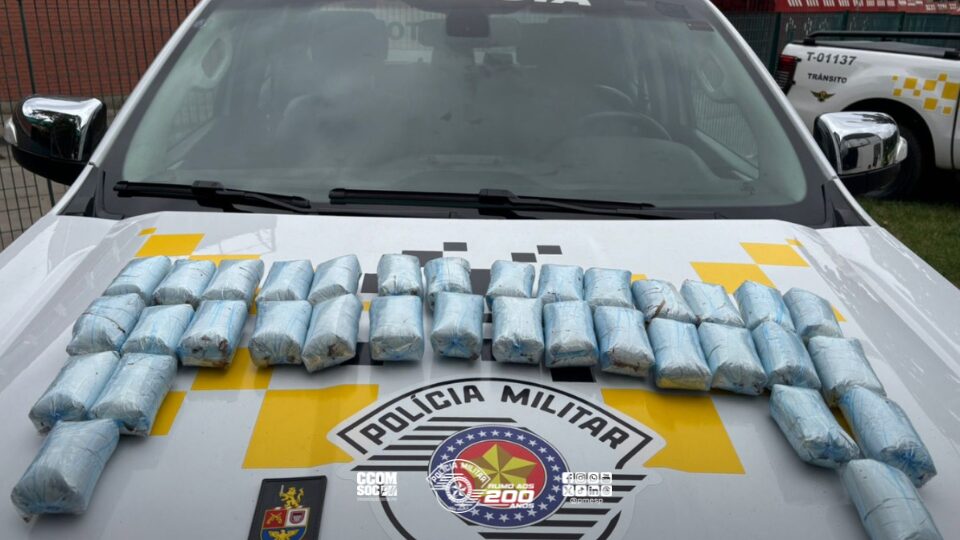 Na manhã desta quinta-feira (20), uma equipe do 1º Batalhão de Polícia de Trânsito, localizou 34 pacotes de droga tipo “dry” (haxixe de alta potência) durante fiscalização no Terminal Rodoviário Barra Funda, na capital.