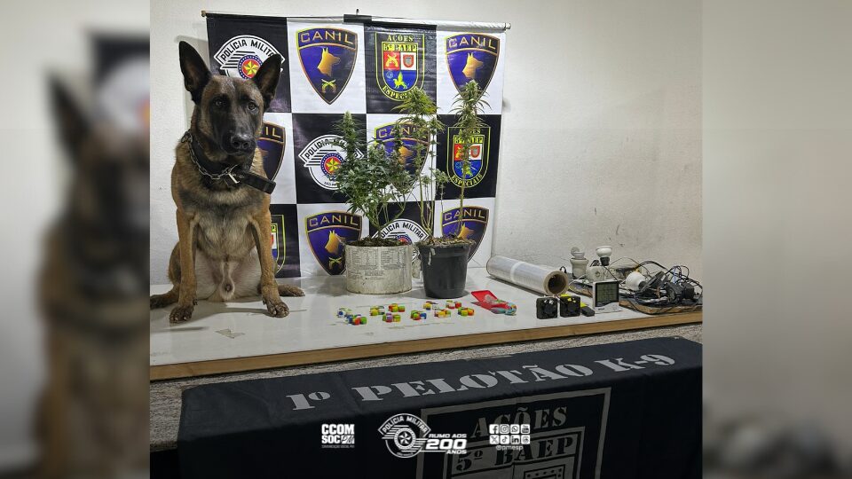 Canil do 5º BAEP apreende estufa de drogas durante ação em Itapevi-SP