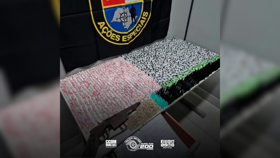Policiais militares do 13º Batalhão de Ações Especiais de Polícia (13º BAEP) prenderam um indivíduo por tráfico de drogas e posse ilegal de arma de fogo, durante patrulhamento realizado no bairro Ferradura Mirim, em Bauru, no interior paulista.