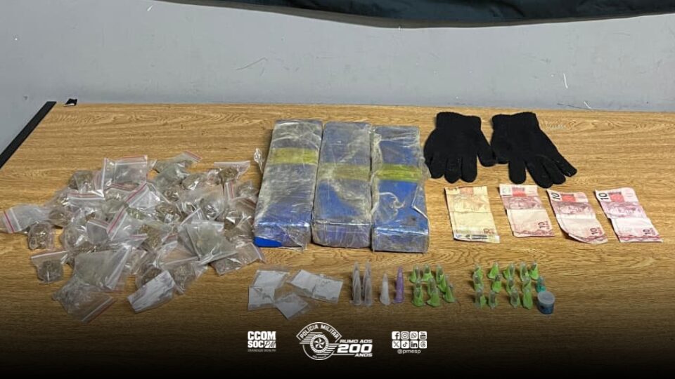 Na tarde de ontem (02), durante a Operação Escudo, equipes em patrulhamento pela zona norte da capital abordaram um veículo na Avenida Inajar de Souza após tentativa de fuga de um dos ocupantes. O indivíduo foi contido e detido, assim como os outros quatro passageiros. Durante as buscas, foram encontrados três tijolos de maconha, 46 invólucros da mesma droga, 24 tubos plásticos também com maconha, cinco papelotes e um eppendorf de cocaína, seis eppendorfs de K2, dois de crack, além de R$ 395,00 em dinheiro, outro valor de R$ 80,00 e um aparelho celular. Consultas aos sistemas de segurança revelaram que um dos detidos estava procurado pela Justiça por tráfico de drogas, com pena superior a 11 anos a cumprir, e ainda tinha histórico de ligação com uma organização criminosa. Todos foram conduzidos ao Distrito Policial, onde as prisões foram ratificadas e a ocorrência registrada como tráfico de entorpecentes e captura de procurado. COMUNICAÇÃO SOCIAL PMESP