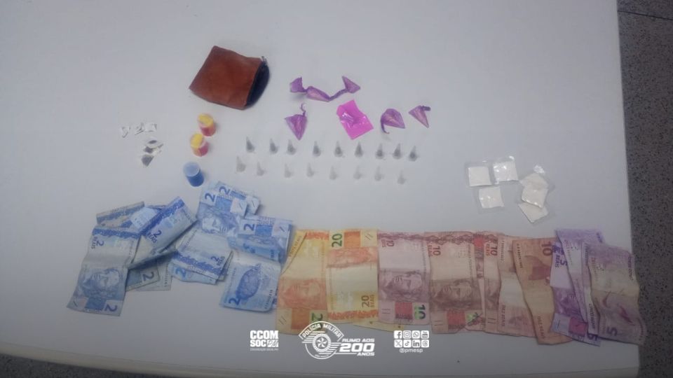 Durante a ação, realizada por equipe da Força Tática do 35º Batalhão de Polícia Militar Metropolitano, os policiais abordaram um indivíduo após informações repassadas pelo Disque-Denúncia. Na busca pessoal, foram localizadas porções de entorpecentes e dinheiro. Em um ponto próximo, os policiais encontraram uma bolsa contendo mais drogas.