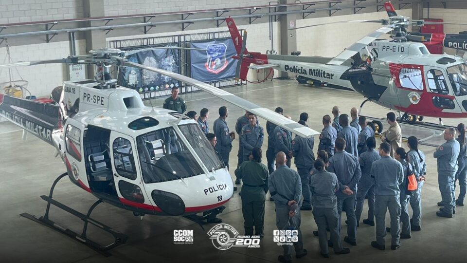 A programação também incluiu uma visita técnica ao Comando de Aviação, onde 22 alunos e três discentes receberam instruções práticas sobre reconhecimento de aeronaves, protocolos de segurança e procedimentos de embarque e desembarque de vítimas em operações conjuntas do Corpo de Bombeiros e da Aviação da PM.