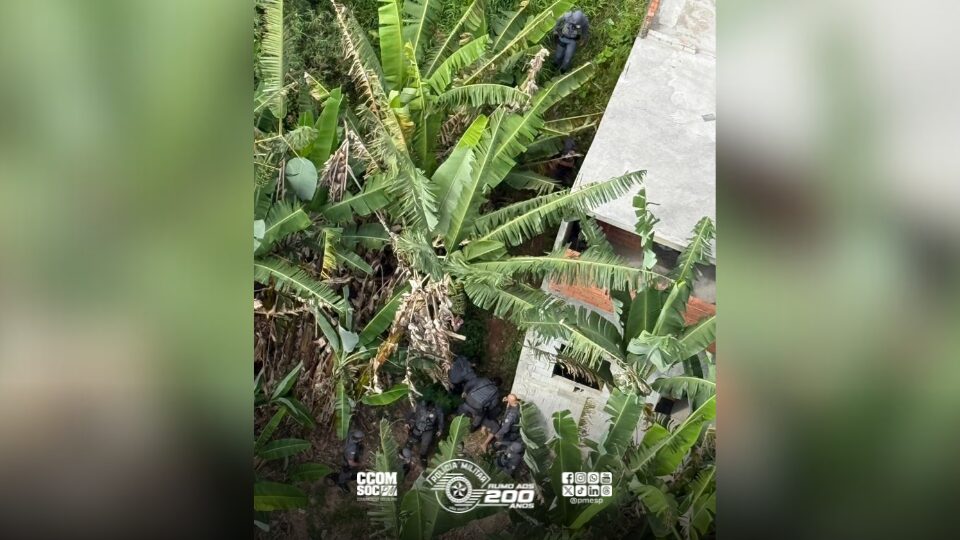 Os agentes visualizaram dois indivíduos que, ao perceberem a presença policial, abandonaram uma sacola preta e um rádio comunicador às margens do canal e tentaram fugir.