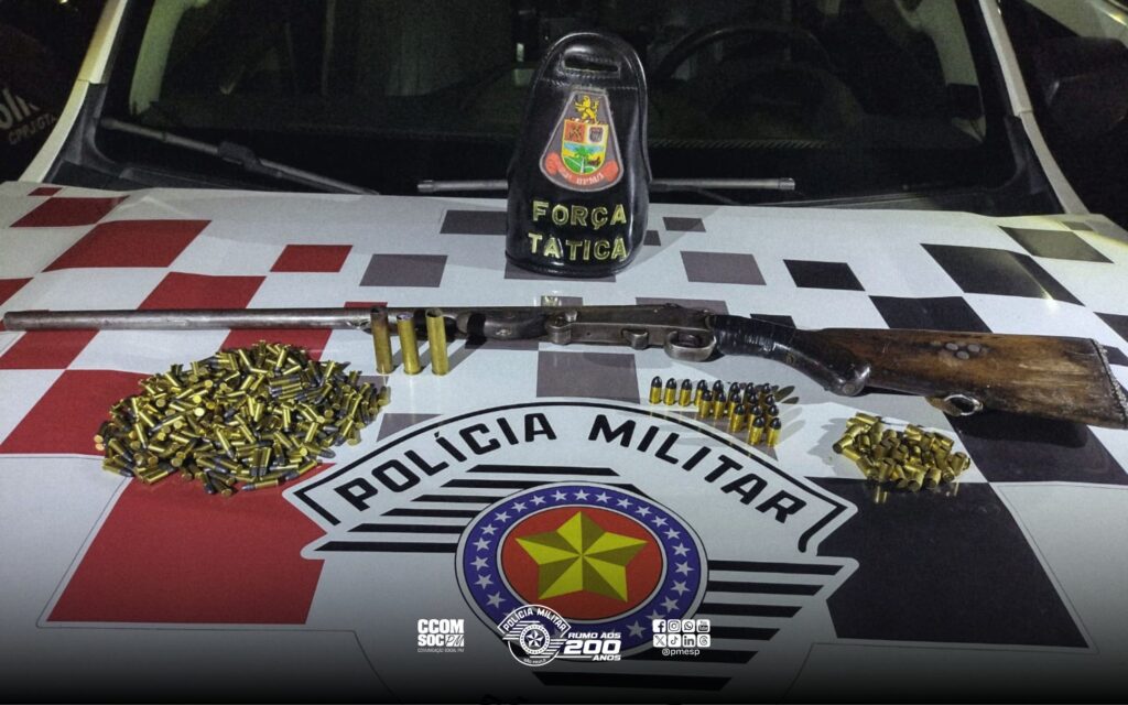 Durante a Operação Impacto/Virtude, nesta segunda-feira (20), em Lorena/SP, a Polícia Militar apreendeu uma espingarda e mais de 300 munições.