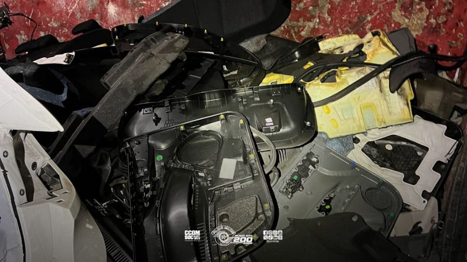Na vistoria pelo imóvel, os policiais localizaram diversas peças automotivas e 39 placas de veículos com registros de roubo ou furto, evidenciando a prática de desmanche ilegal.