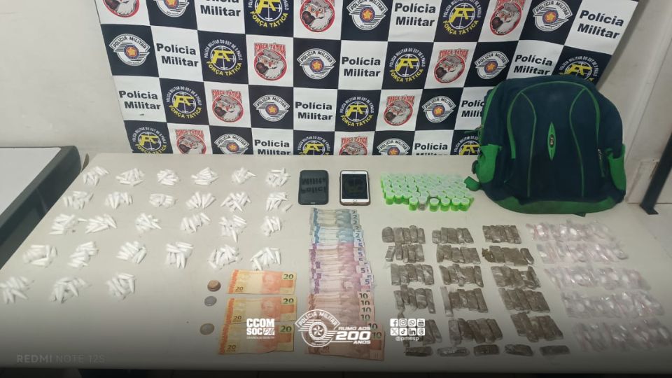 No sábado (18), policiais militares da Força Tática do 9º Batalhão de Polícia Militar do Interior prenderam dois homens por tráfico de drogas em Marília, interior de São Paulo. Durante patrulhamento preventivo, a equipe flagrou os indivíduos realizando a venda de entorpecentes na via pública.