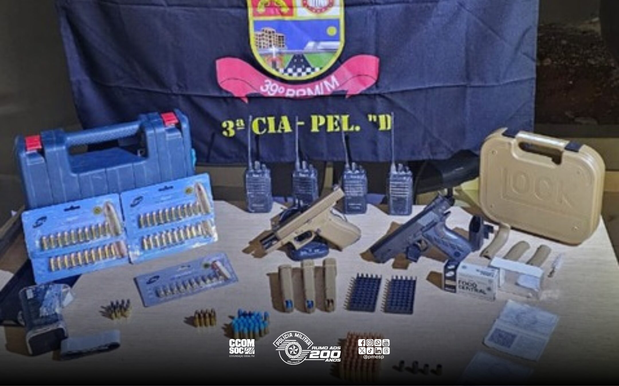 Durante patrulhamento pela Avenida Mário de Andrade, em São Paulo/SP, equipes abordaram um homem que apresentava comportamento suspeito, com a mão próxima à cintura. Na busca pessoal, foi localizado um simulacro de pistola, que ele admitiu ter a intenção de usar para a prática de roubos visando aparelhos celulares.
