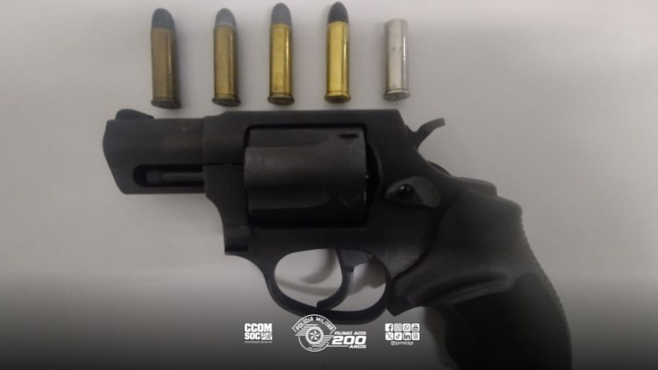 Durante a abordagem, os policiais realizaram busca pessoal e localizaram um revólver calibre .38 com numeração suprimida, quatro munições intactas e uma deflagrada.