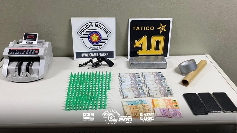 A ação teve início após denúncia anônima que apontava o local como ponto de armazenamento de entorpecentes e armas. Durante a abordagem e busca no imóvel, foram localizados um tijolo de maconha, 200 microtubos de cocaína, um revólver calibre .38, R$2.645,00 em dinheiro, uma máquina de contar dinheiro, material para embalar drogas e três aparelhos celulares.
