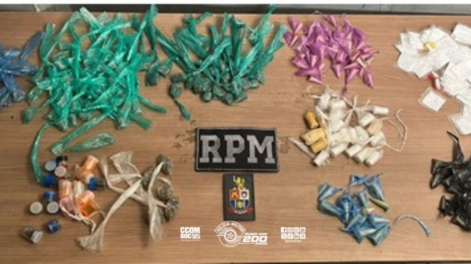 O indivíduo foi alcançado e abordado. Com ele, os policiais localizaram uma sacola contendo 116 porções de maconha e 209 porções de cocaína.