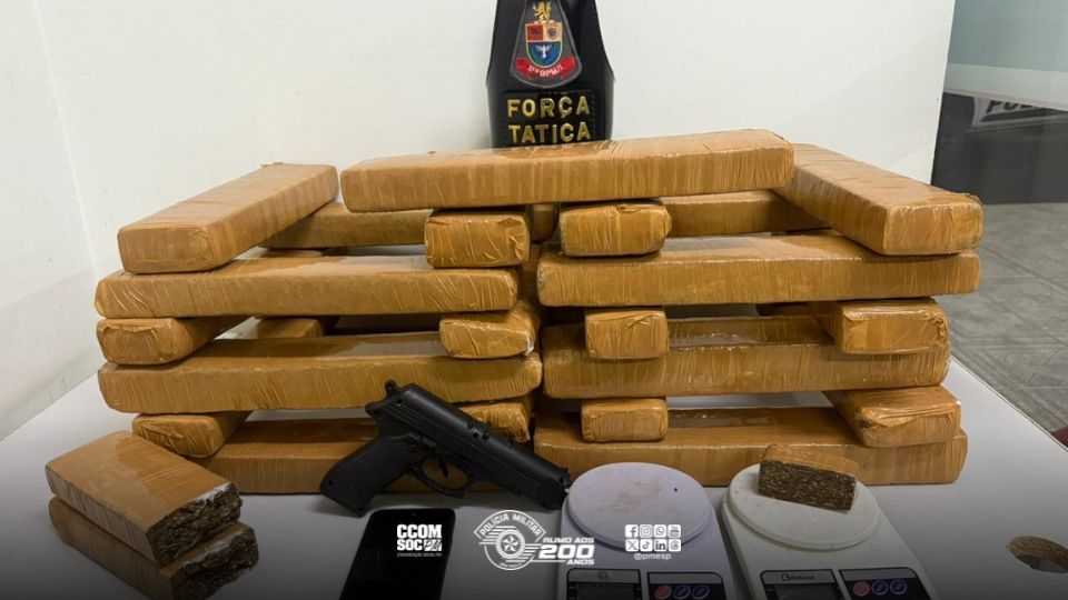 Durante patrulhamento pelo Jardim Novo Wenzel, a equipe abordou um indivíduo que conduzia uma motoneta e demonstrou comportamento suspeito ao notar a viatura. Na vistoria, foram localizados dois tijolos de maconha no veículo.