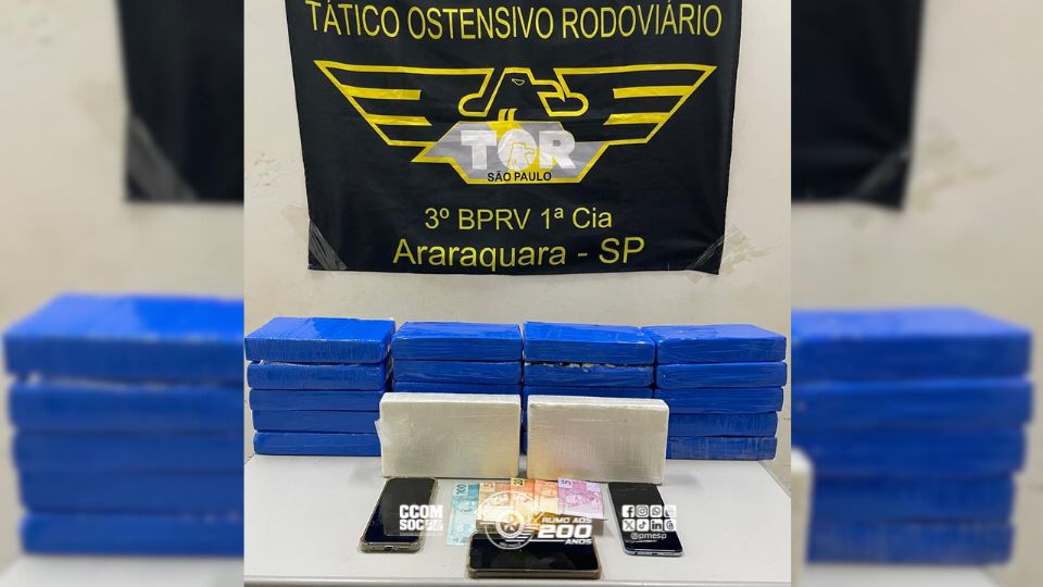 Na manhã desta segunda-feira (3), equipes do Tático Ostensivo Rodoviário (TOR) do 3º Batalhão de Polícia Rodoviária apreenderam 44 tijolos de cocaína, totalizando 47,470 kg, durante operação na Rodovia Washington Luiz (SP-310), em Araraquara, São Paulo.