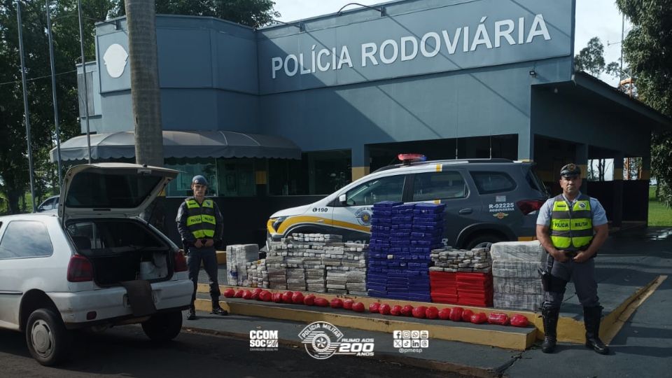 Na manhã desta segunda-feira (15), agentes do 2º Batalhão de Polícia Rodoviária, apreenderam mais de 580 quilos de drogas, em Presidente Epitácio, após abordagem a um veículo na Rodovia Raposo Tavares, interior de São Paulo.