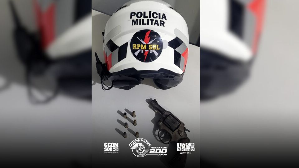 Durante as buscas, os policiais localizaram a suspeita com as mesmas características informadas. Na abordagem, foram encontrados dentro de uma bolsa um revólver calibre .38, uma munição deflagrada e uma faca com soco inglês.