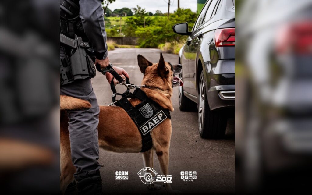 Equipes K9 do 13º Batalhão Ações Especiais de Polícia (BAEP) atuaram na operação conjunto, que ocorreu durante o cumprimento de mandado de busca em uma residência localizada no centro da cidade.