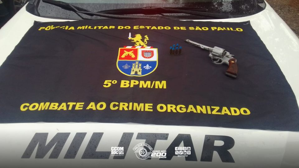 Ontem, 27, policiais militares do 5º Batalhão de Polícia Militar Metropolitano apreenderam um revólver calibre .38 durante uma abordagem na Avenida Educador Paulo Freire, zona norte de São Paulo.
