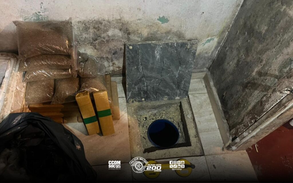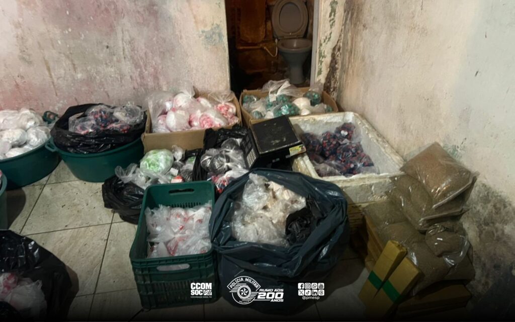 O imóvel fica na travessa Uruguai e, durante patrulhamento, a cadela Luna indicou o local como possível ponto de drogas. Na averiguação, os policiais encontraram diversas porções de entorpecentes, além de frascos e galões de lança-perfume. O material estava em um esconderijo sob o piso de um dos cômodos.