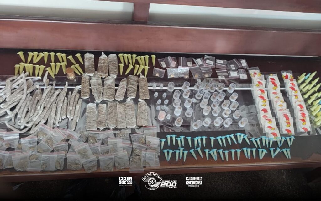 Na sacola, foram apreendidas porções de maconha, crack e cocaína. A ocorrência foi registrada no 1º Distrito Policial.