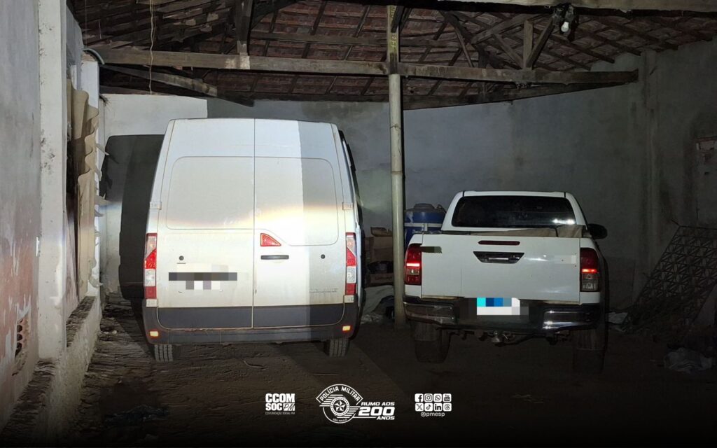 Durante a averiguação, a PM também encontrou dois veículos que estavam com as placas trocadas e foram furtados entre 2024 e 2025, uma TV e pneus.