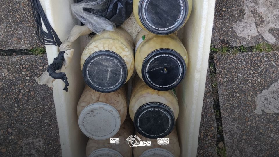 A fiscalização teve início após a equipe avistar, às margens de uma estrada vicinal, potes de palmito industrializado e peças de madeira nativa expostas em frente a uma residência. No local, também foram identificadas roupas camufladas e redes, itens característicos da prática de caça ilegal.