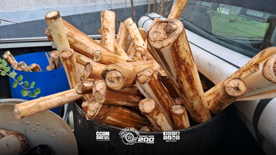 Durante a fiscalização, os policiais encontraram e apreenderam 107 hastes de palmito Juçara in natura e 26,7 kg de palmito beneficiado em conserva. A espécie, além de nativa da Mata Atlântica, está ameaçada de extinção e seu corte é proibido sem autorização específica.