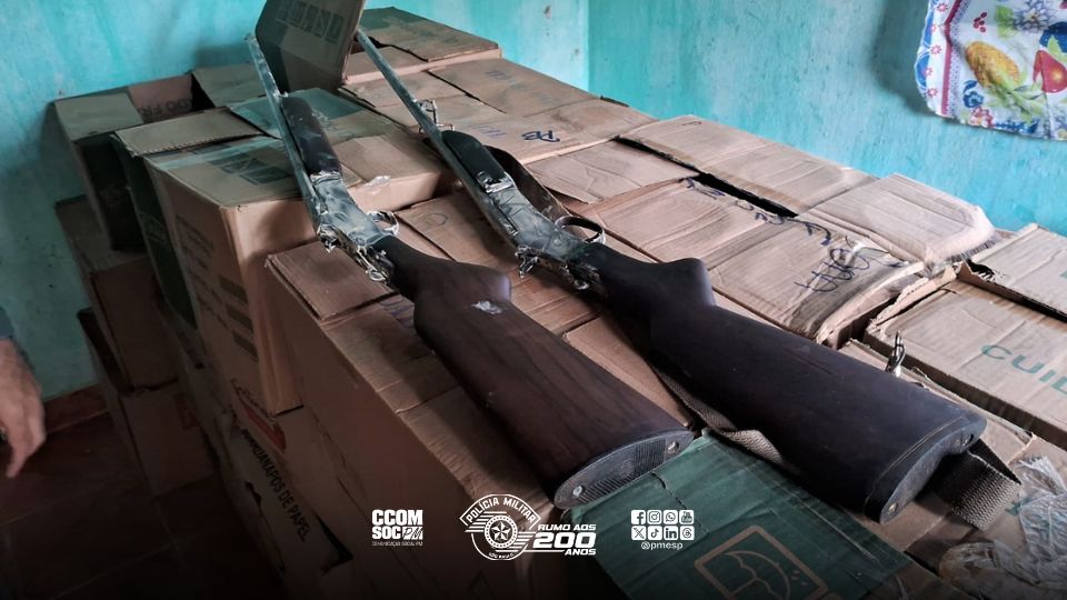 Além disso, foram localizados 52 kg de carne de animais silvestres, como teiú, tatu, paca, cateto e capivara — todos pertencentes à fauna brasileira e cuja caça é proibida por lei. Também foram apreendidas quatro armas de fogo (entre espingardas e armas artesanais) e diversas munições.