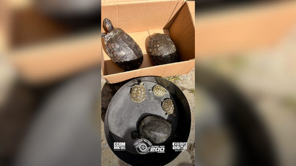 Durante a fiscalização em uma pousada localizada no bairro Perequê, foram encontrados seis exemplares de tigre-d’água (Trachemys scripta elegans), espécie exótica da fauna silvestre, mantidos sem autorização do órgão ambiental competente.