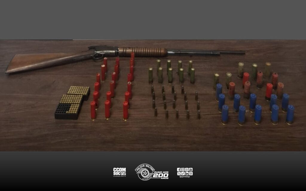 Uma espingarda calibre .22, além de um total de 191 munições de diferentes calibres, foram apreendidas. O homem foi conduzido ao Distrito Policial de Paulínia, onde permaneceu à disposição da Justiça.