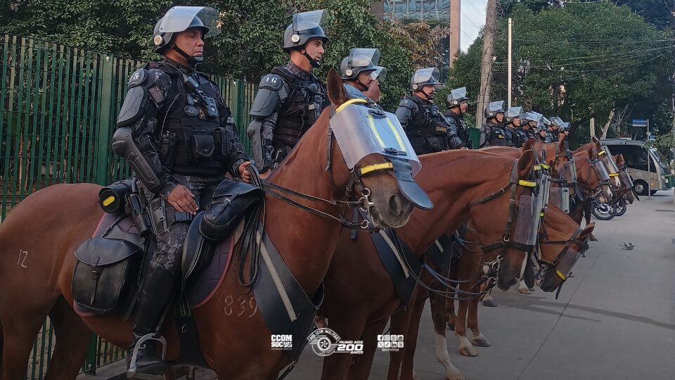 São Paulo/SP – Na noite ontem (16), a Polícia Militar do Estado de São Paulo, por meio do Comando de Policiamento de Choque (CPChq) e do Regimento de Polícia Montada “9 de Julho”, realizou operação de segurança integrada para o confronto entre Palmeiras e Sporting Cristal (Peru), válido pela Copa Libertadores da América 2026, disputado no Estádio Allianz Parque, na capital paulista.