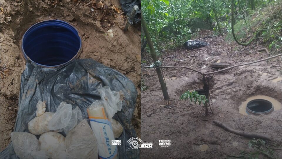 Policiais militares localizaram e apreenderam entorpecentes que estavam enterrados em tonéis em uma área de mata nas proximidades da Avenida Hugo Ítalo Merigo, na zona norte de São Paulo.