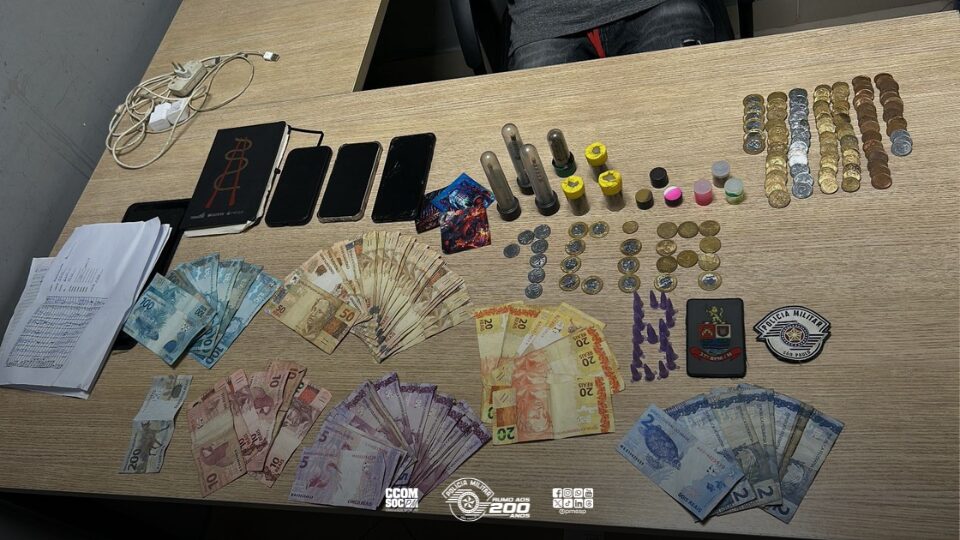 Foram recuperadas 16 caixas do medicamento Mounjaro (tirzepatida), contendo canetas aplicadoras, avaliadas em aproximadamente R$ 32 mil, além de R$ 150 em dinheiro. A arma apreendida, uma pistola calibre .380 com numeração suprimida, estava municiada com oito cartuchos.