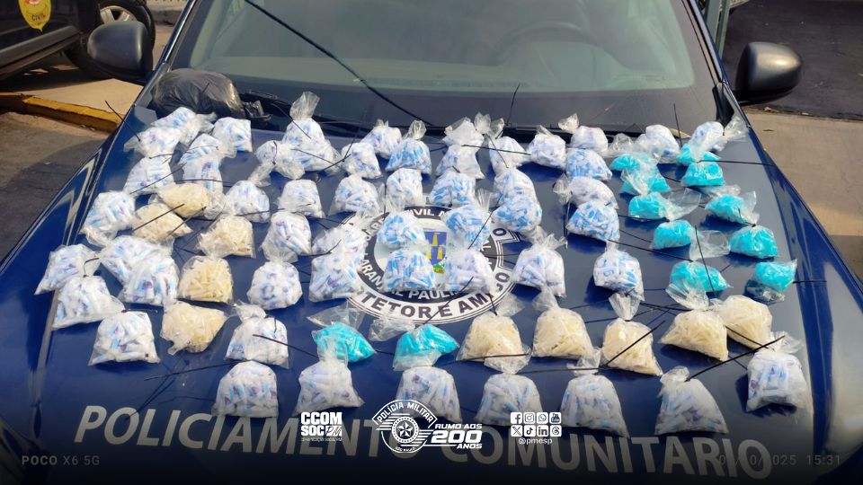 Na sacola, foram apreendidos 1.983 pinos de cocaína (totalizando 2,403 kg), 1.120 pinos de crack (0,711 g) e R$ 7 em cédulas. O homem recebeu voz de prisão pelo crime previsto no artigo 33 do Código Penal (tráfico de drogas) e foi encaminhado para a Santa Casa de Laranjal Paulista para avaliação médica. Posteriormente, foi levado ao Plantão Policial, onde a prisão em flagrante foi ratificada pelo delegado.