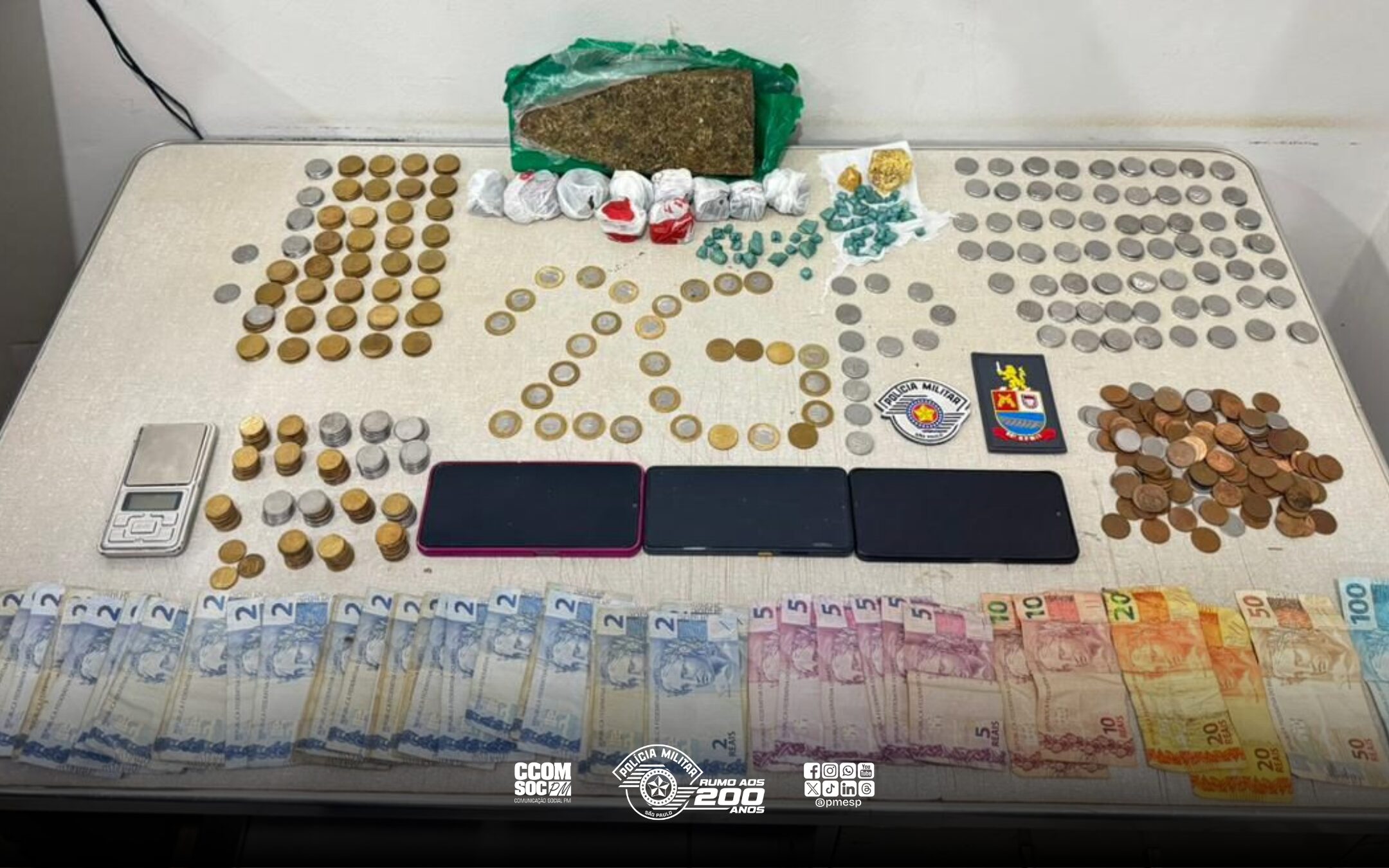 A ação começou com a abordagem de um indivíduo em atitude suspeita, que tentou fugir pelo telhado ao perceber a presença policial, mas foi detido. Com ele, foram encontrados R$ 1.890,50 em notas trocadas e diversas porções de entorpecentes, incluindo crack, cocaína, maconha e K2. No local, também foram apreendidos uma balança de precisão, um caderno com anotações do tráfico, 48 frascos de lança-perfume e mais porções de drogas.