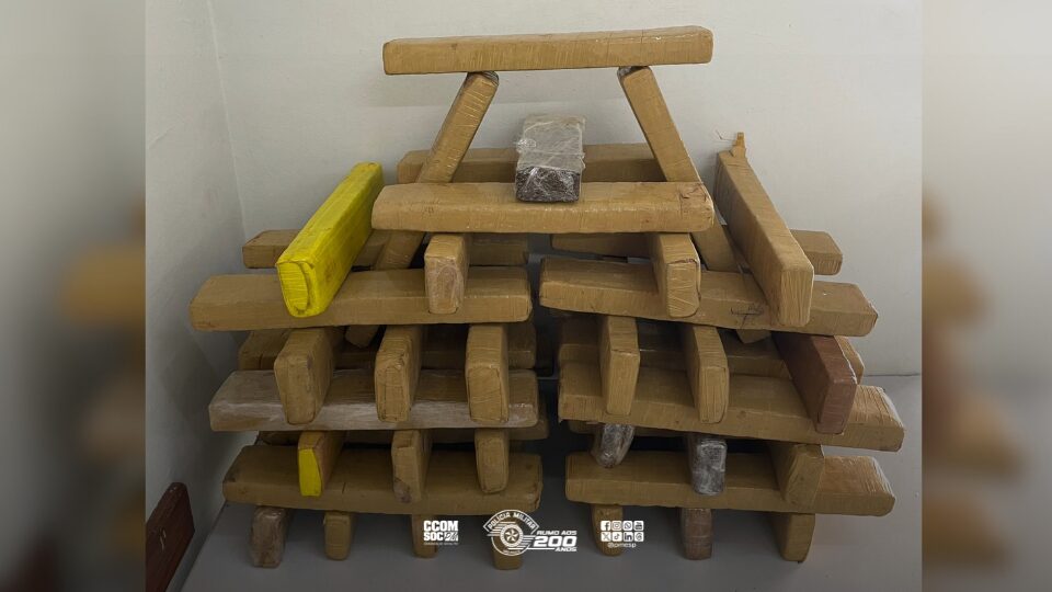 No porta-malas, a equipe localizou dezenas de tijolos de entorpecentes, além da quantia de R$ 46,65 em dinheiro. Ao todo, foram apreendidos 49,5 quilos de maconha.