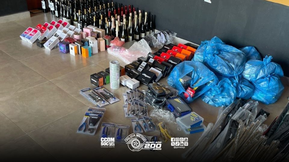 O veículo foi escoltado até a Base do Policiamento Rodoviário de Corumbataí, onde as mercadorias foram quantificadas, totalizando 835 itens avaliados em R$ 136.625,43, incluindo aparelhos celulares, vinhos importados, equipamentos e acessórios de pesca, perfumes e outros produtos.